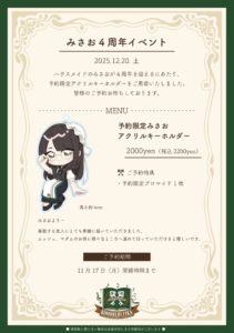 本日よりみさおアクリルキーホルダーの予約を受け付けいたします。
